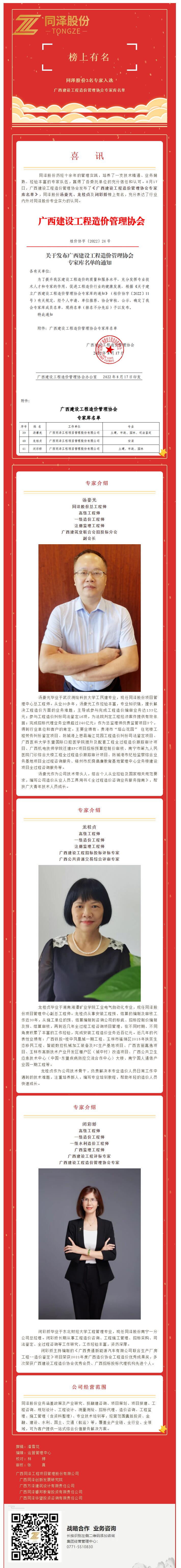 喜訊 | 同澤股份3名專家入選廣西建設(shè)工程造價(jià)管理協(xié)會(huì)專家?guī)烀麊?/h2>